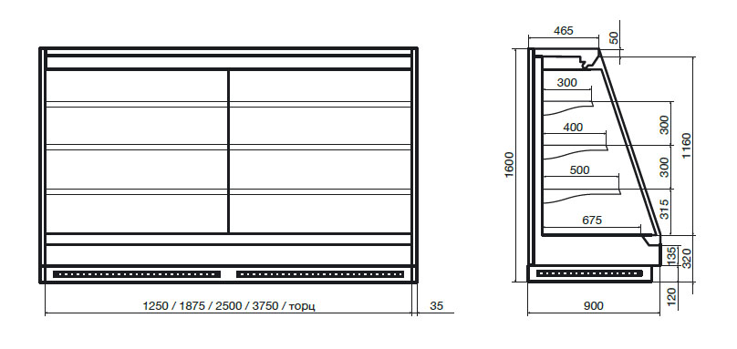 Глубина выкладки: 675 / 500 / 400 / 300 мм