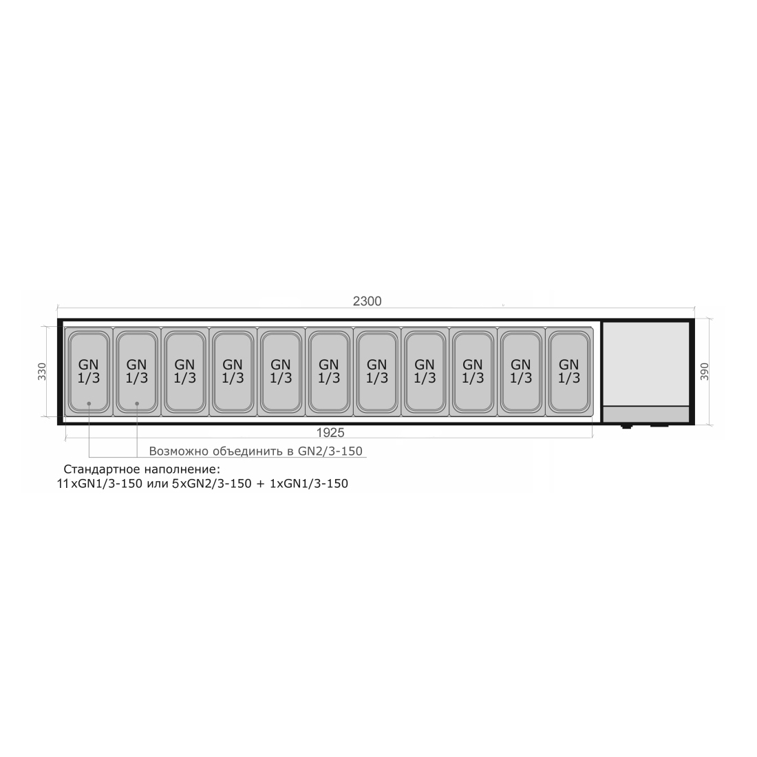 Холодильная витрина ToppingBox Финист НХВсм-11 с гнутым стеклом используется на предприятиях общественного питания и торговли для демонстрации, охлаждения и кратковременного хранения ингредиентов для салатов, пиццы, закусок, бутербродов, десертов и т.д.
